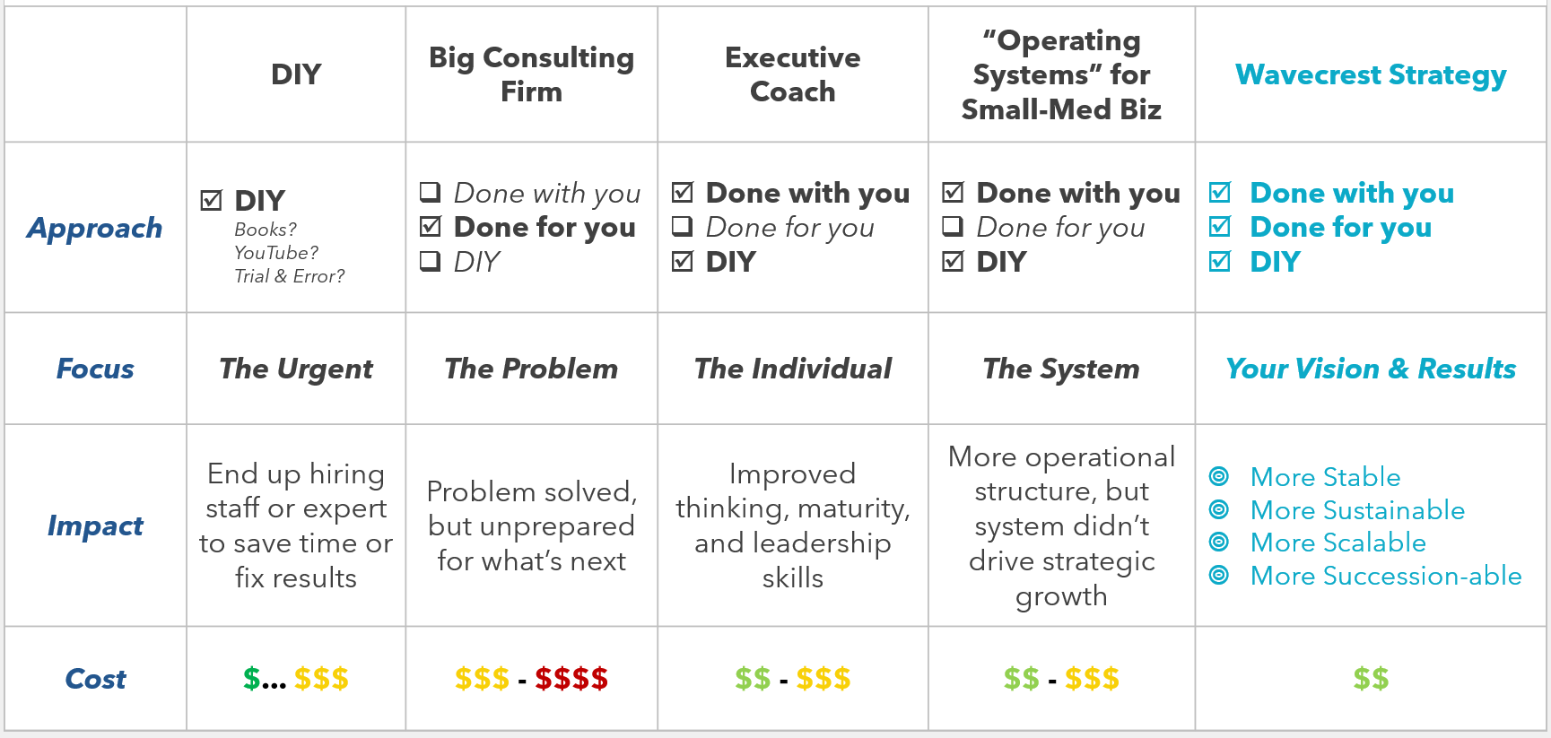 Wavecrest Strategy’s intent is not to tell you how to run your business, but rather bring to your table good questions, good methods, good insight, and good experience that clarifies your decisions and boosts your confidence in the strategic operations plans you make.